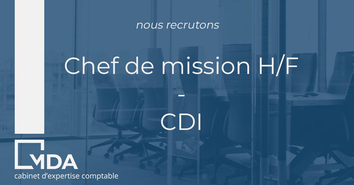 Le cabinet MDA (Expert Comptable, Conseils, Juridique, Social, Patrimoine), recherche un(e) Chef(fe) de mission en CDI.